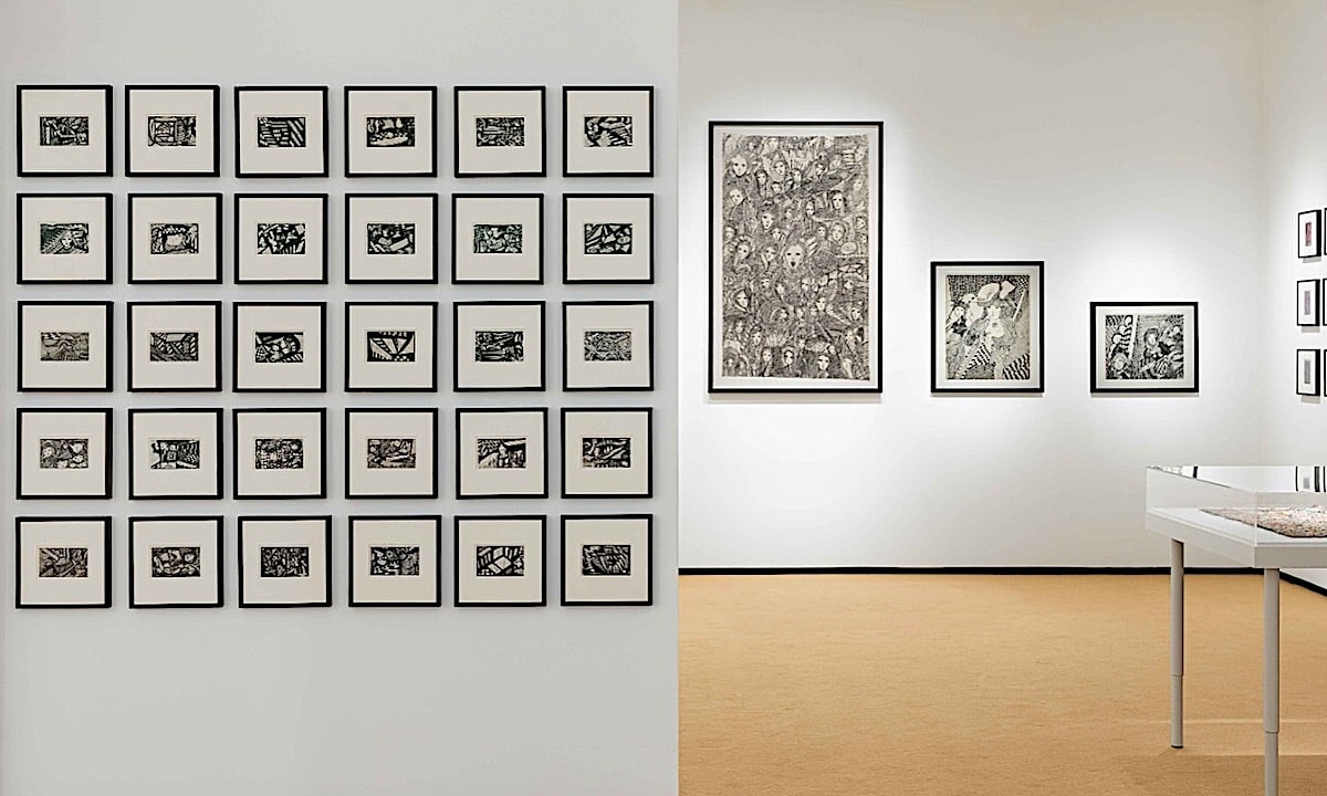 The focal point of the exhibition will be The Crucifixion of the Soul, which has not been on public display since 1979, and is Gill’s most important work. Over ten metres long, this immense calico is inscribed with Gill’s finely wrought doodle-like drawings and is testament to Gill’s commitment to creativity.