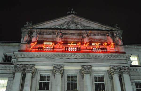A new work by the artist Gavin Turk has opened at Somerset House in London. This cold cathode artwork, displays the median population of the world...