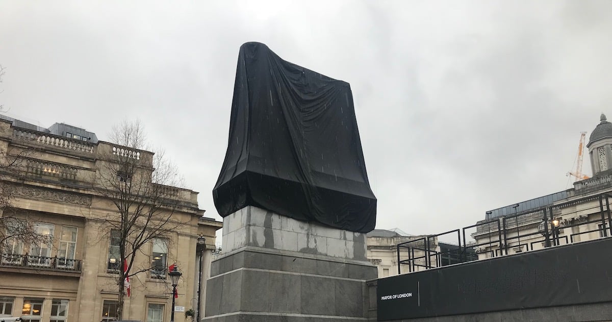 The unveiling of the Fourth Plinth commission, a giant soft-serve dollop of whipped cream topped with a cherry, a fly and a drone by Heather...