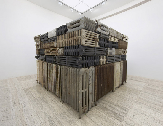 Newcastle-born Indian Bharti Kher swells domestic concerns to fabulous size and fabulent effect. There are fresh variations on her characteristic use of bindis, some on shattered mirrors, some on a found staircase reaching only to the ceiling. The title work is a room of old American radiators which Kher assured me really had been shipped to India and back, picking up an aura as well as shipping costs along the way. Bodes well for her biggest British showing yet – at the Parasol Unit in September…