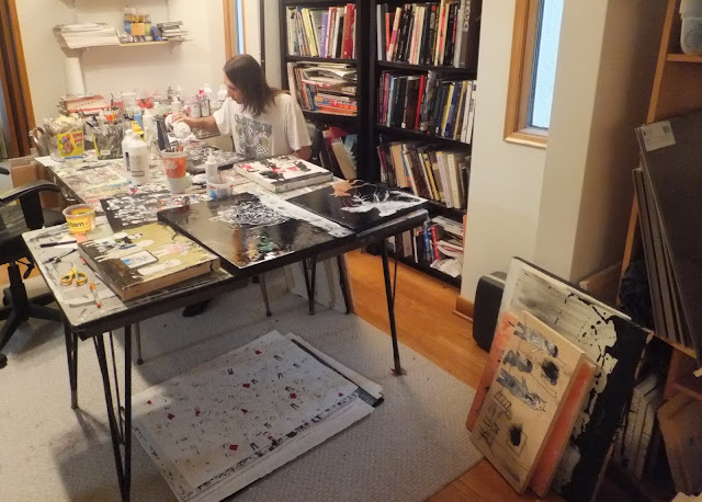 Michael Dumontier and Neil Farber didn’t stop collaborating when Winnipeg’s famous Royal Art Lodge collective ended in 2008: they carried on working together at least every Wednesday, but as a new duo rather than a continuation of the group. Dumontier’s solo work brings a minimalist simplicity to the conceptual slapstick which was typical of the Lodge. Farber on his own is a restless and hyper-productive experimenter from a base of spontaneous drawing, using, abusing and combining a dizzying range of paints, inks and collage elements in the service of the next wittily mordant apercu.