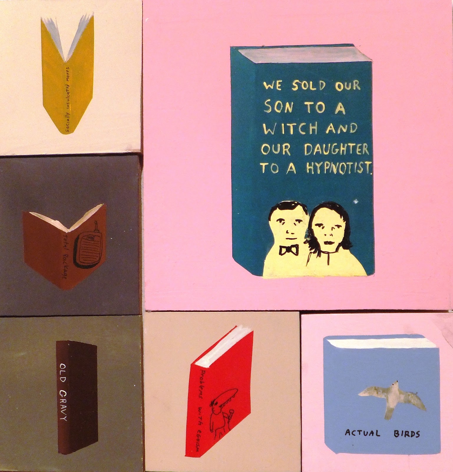 The first part of ‘My Winnipeg’, at Plug In, features a project which brings those approaches together. The 15 foot wide ‘Library’ (2008-12) is made up of hundreds of matt-on-wood paintings, varying in size, but each depicting one book, and translating the literary into a multicoloured homage to geometric abstraction. Zooming in, one sees that Dumontier’s tomes teem with Farberesque titles: ‘Abandon Your Inner Tube’, ‘Speaking and Kissing in Tongues’, My First Wedding’ and ‘Zinky’ caught my eye, along with ‘We Sold Our Son to a Witch and Our Daughter to a Hypnotist’.