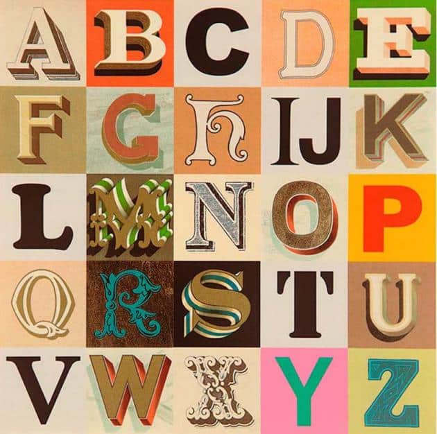 The De La Warr Pavilion is presenting an exhibition of Peter Blake’s Alphabets Letters & Numbers, comprising three print series, Alphabet (1991), An Alphabet (2007) and Appropriated Alphabets (2013), and a personally chosen selection of related original artworks. It forms part of the De La Warr Pavilion’s concurrent programme of exhibitions exploring language, typography, and design.