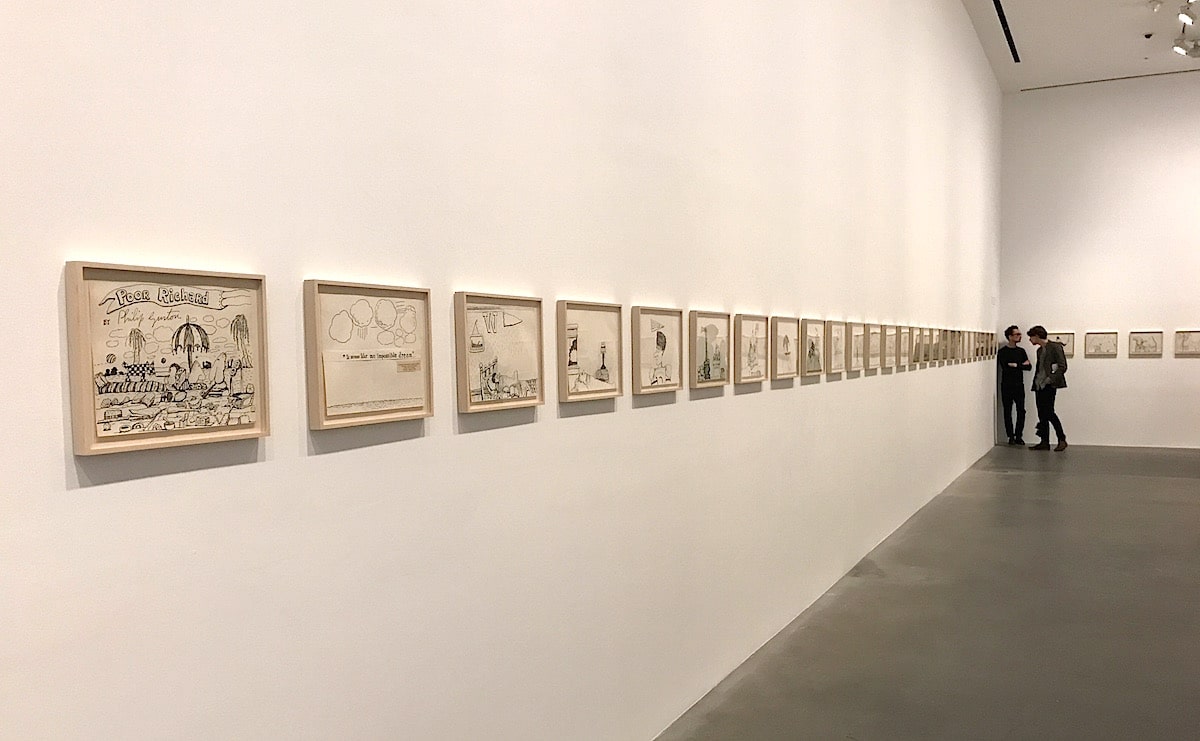 The exhibition consists of a long series of satirical drawings made by Philip Guston in 1971, with a few more added in 1975. The drawings, with the series title Poor Richard, excoriate the character and actions of one of Trump’s predecessors, Richard Nixon, the only American president to have been forced to resign because he was about to be impeached. Nearly fifty years have passed since they were made, but looking at the drawings now what immediately comes to mind is the famous epigram coined by Alphonse Kann, a mid-19th century French journalist: ‘plus ça change, plus c’est la même chose’ – ‘The more things change, the more they remain the same.’