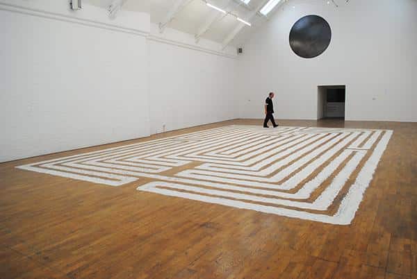 ‘Walking a Labyrinth’ is a typical Richard Long journey, an action taken out of the landscape and in this instance placed in the white cube of the gallery, so enjoy the artist’s historic interactive installation and take a walk.