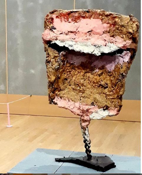 An obvious choice, but the new Franz West show is a hoot which captures his spirit. ‘Kollega’ 1988 is one of his papier-mache works, often made from old phone directories and painted casually while he was on the phone. This one looks like a sandwich grinning back bigtime at its consumer. Sarah Lucas covered the crowd control architecture in tape and painted it in Franz colours – here a pink he took from children’s pyjamas – as part of her lively Westian interventions into the presentation. The cinderblock plinth is her, too. Add worthwhile shows at David Zwirner and Omer Tiroche, and the RA’s excellent show by Phyllida Barlow – who I’d say is as close to Franz’s approach as Lucas, and it’s very much time to Go West.