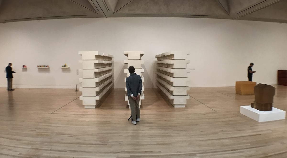 There’s a restrained emotional power to much of her work. Untitled (Book Corridors) 1997-8 is a precursor to the Holocaust Memorial, commissioned for Vienna’s Juednplatz, in 2000. Unlike other famous libraries such as Alexandria and Ephesus or Borges fictional bibliographical labyrinthine, all of which were filled with life-enhancing knowledge, this is a tomb where all language has been silenced. As we move on to Untitled (Stairs) 2001 and Untitled floor (Thirty-six)2002, she explains that these were taken from her previous home, an old synagogue in the East End. The stairs, like a great pair of white plaster wings that make me think of the fall of Icarus, lead nowhere. She caste them before the family moved in. She must, I suggest, have a very understanding husband. “Yes”, she says, “he’s very supportive.”