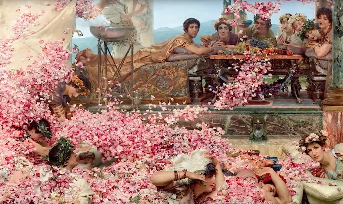 It’s at this point that Damien Hirst’s recent work, specifically the two exhibitions called Treasures from the Wreck of the Unbelievable, now on view at Palazzo Grassi and Porto Dogana in Venice until next December 3rd, inevitably comes to mind. Most of all the link to the very cinematic Roses of Heliogabalus