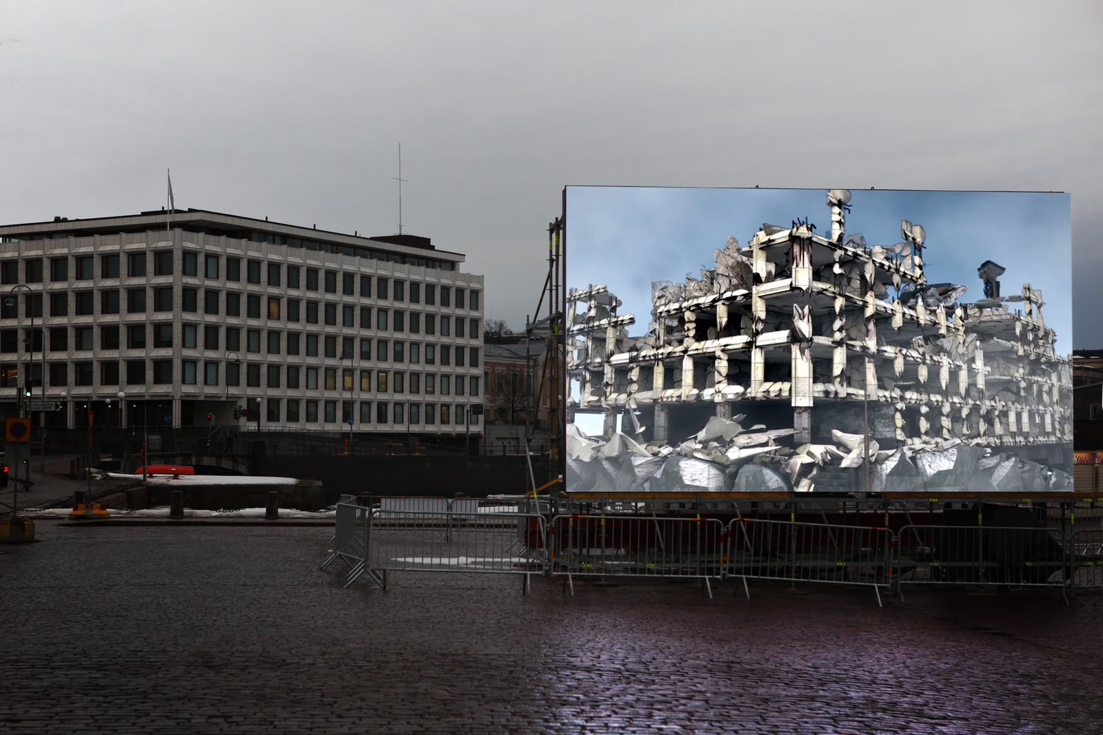Von Bartha has my favourite commercial space in Basel: it takes up most of a former garage, but there are still operative petrol pumps outside. Inside, the Danish collective Superflex (perhaps you’ve seen their flooded McDonalds) brought their witty brand of anti-capitalist subversion to bear. They included contracts requiring corrupt practices to be followed; memorials to bankrupt banks; and plant pots in the form of the world’s top investment bank HQs in which psychotropic plants were growing, so suggesting that high finance dealings might be comparably addictive, euphoric and irrational. There was also a ten day film simulation of how an architectural ideal of modernism would deteriorate if left to do so over thousands of years, originally shown on a 40 m2 screen in front of its subject, the Stora Enso building in Helsinki.