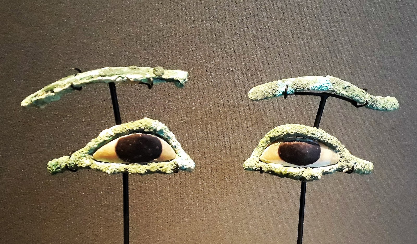 Egyptian mummy mask eyes, c 500 BC at Porfirius Kunstkammer, Neerijse, Belgium