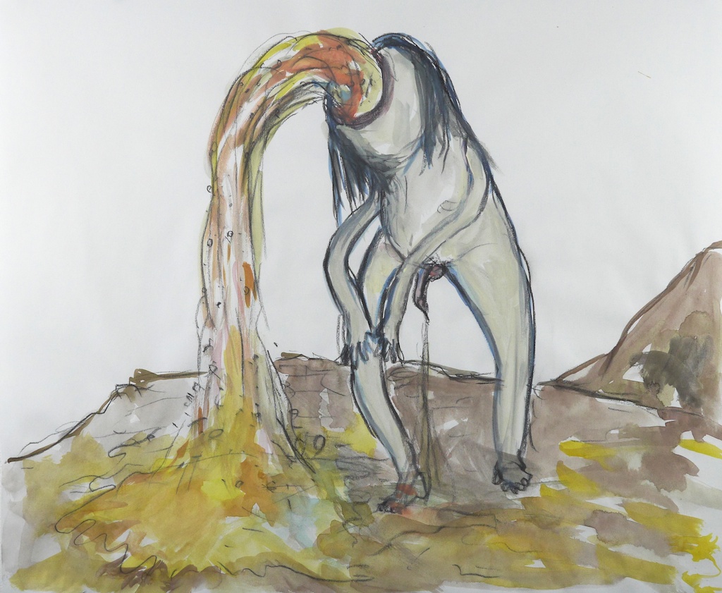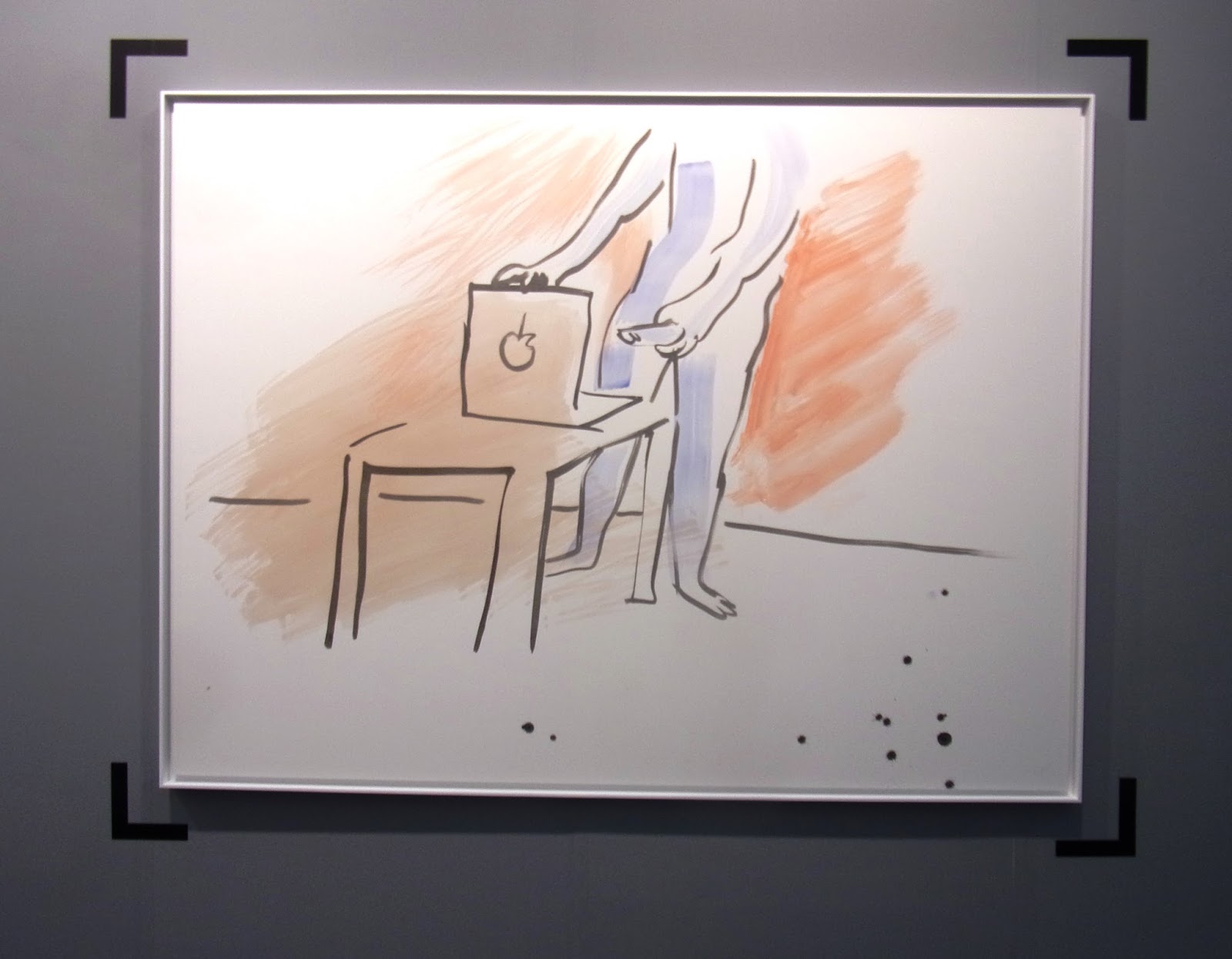 The Box teems with the energetically wild imaginings of three friends all living and working in LA, all making obsessive amounts of drawings – separately and in collaboration – ‘in the studio, at the mountain cabin, at the dinner table’. They are the famous Paul McCarthy, whose contributions included two tables (£135,000) each set with ten manic scrawlings made directly onto placemats during meals; the scabrous writer-artist Benjamin Weissman, and – the youngest and least-known – Naotaka Hiro. His works in watercolours, acrylic and pencil, a comparative snip at £1,000 each, are lively and fluid – in the case of this dual expeller of liquids, rather literally so…