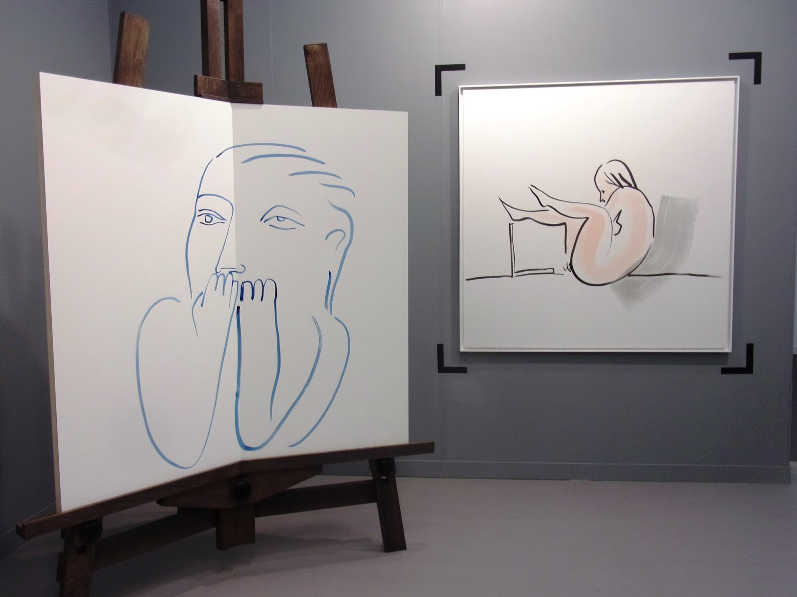 American Camille Henrot, who made her name with a film which won the Silver Lion for a young artist at the 2013 Venice Biennale, combined a biomorphic bronze sculpture, apparently twisted in on itself with angst, with ebullient watercolour drawings (£25,000 each). Their characters get the wrong socks, bite their nails, take embarrassing selfies, trip up, or get caught masturbating to a screen… These comparatively small scale indignities seem to have caused an emotionally disproportionate reaction, but Henrot suggests that’s how it is when ‘minor concerns’ with a would-be-loved one trigger romantic disillusion.