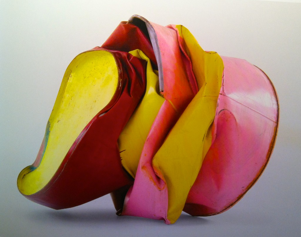 That account might suggest that Chamberlain was very much a formalist, exploring new materials for their own sake, seeing any symbolic resonances or figurative echoes as purely coincidental. Yet Chamberlain himself did make comparisons, including – not to take himself too seriously – with lasagna, used toilet paper and especially with sex: he often made explanations along the lines that ‘the assembly is a fit, and the fit is sexual’, and compared the ‘articulate wadding’ technique of his paper and resin works with the twisted bedsheets resulting from a night of passion. He thought the foam works, too, were “pretty erotic” and complained in 2005 that people had taken forty years to catch on to how “they’ve got all these folds and everything, you know? Like, when you squeeze here, it opens there. I mean, what can you say?”  |