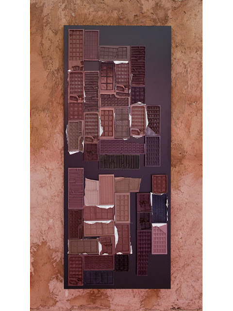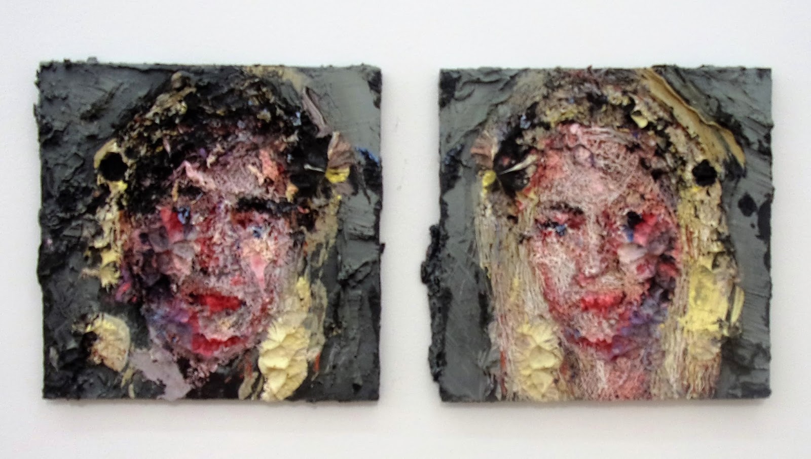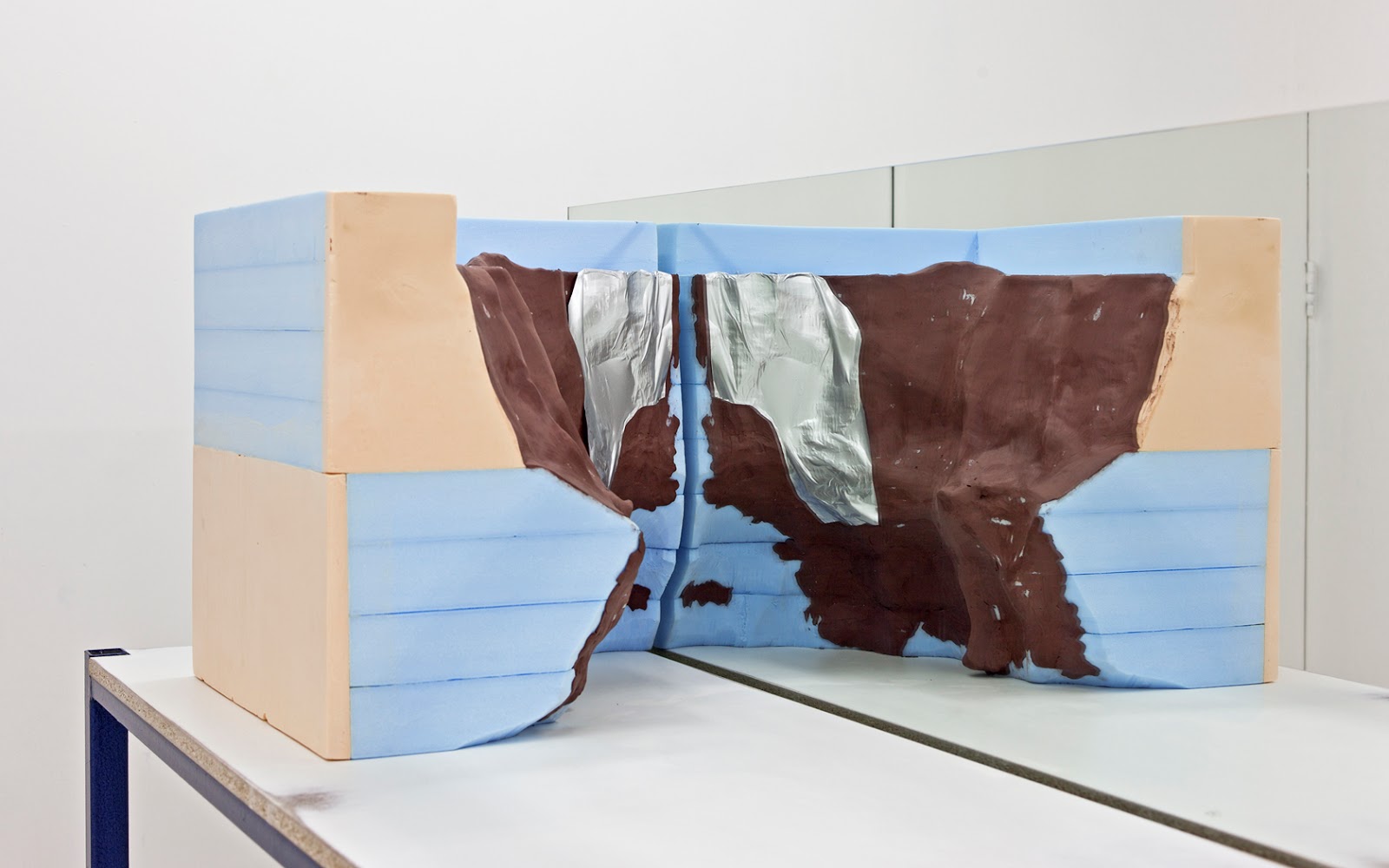 All the press release for this show says is that Spanish sculptor Rubén Grilo claims no credit for it. But whoever is responsible, it’s an enjoyable if head-scratching experience to ponder what concept is proven. I’ve previously seen his grids made from casts of chocolate. which bring modernism and consumerism into a tasty set-to. Here they’re mounted on bales of hay, suggesting rough and ready building blocks at odds with factory production, which is further undermined by the table-come-plinths on which Grilo shows other sculptures: he exposes their construction and puts a lot of effort into sanding back new components to make them look old. On them are giant versions of the shapes made by biting – presumably into chocolate…