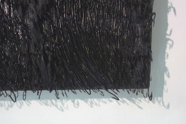 What may sound a rather trivial, if impressively obsessive, idea – to attach fishhooks to twelve seascapes – proves visually effective and politically resonant. The aesthetic comes from the variety of light and weathers depicted and how the hooks – 10,000 on a typical picture, fired black to make them pliable – sculpturalise the sea’s seethings and create shadows around and within the image. The resonance comes from how we in the gallery as island look out through the windows of paintings hung to make the sea’s horizon consistent, and are reminded that the Caribbean acted as Cuba’s Iron Curtain during the Cold War – during which Yoan Capote grew up in Havana.