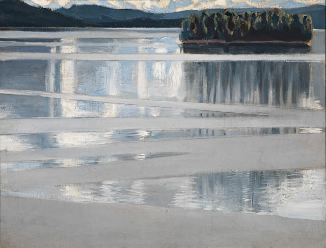 Akseli Gallen-Kallela, Lake Keitele, 1904 (a slightly earlier version than the National Gallery’s own, with more of the abstracting ‘wake of a Kalevala boat’ effect in the foreground)
