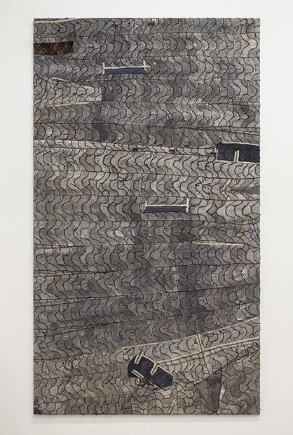 This show puts forward a neat theme – the surprising combination of materials – and makes a stimulating choice of artists who use that approach for their own interesting reasons. Keita Miyazaki provides the ideal start by reconciling discarded car engines with paper folded origami-style. Continuing with tough meets fragile, Brazilian Túlio Pinto balances rock against glass with elegant drama. Felicity Hammond melds metal and concrete with photography. Alice Cattaneo’s glass and wood wall sculptures function a little like paintings, whereas Jane Bustin’s paintings edge towards sculpture with limewood, chiffon, crystal and copper included in Fluorite, 2017. And Leonardo Drew, the most established artist here, fixes large chunks of wood and mis-shapes of aluminium onto heavy paper.