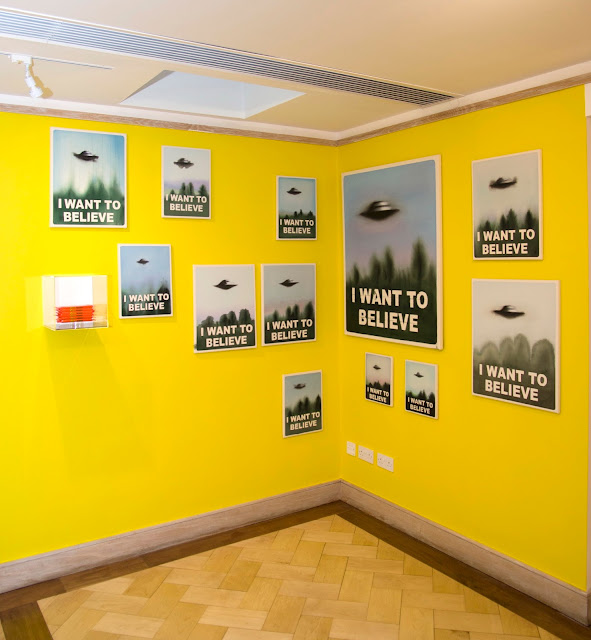 Law firm Collyer Bristow have, remarkably, now been using their offices to show art for 25 years*. And they’re big shows: 60-odd works by 20 artists appear in regulator curator Rosalind Davis’ latest, which uses a Talking Heads lyric even older than the gallery to set off thoughts about what the future might be like. Any danger of sci-fi similitude is countered by plenty of wit (eg Kitty Sterling, David Worthington, Sasha Bowles) and a good sprinkling of retro-futurism (Tim Ellis, John Greenwood and young German Arno Beck, who has the surprising idea in one of his age of using a typewriter to convert digital images into deliciously delicate analogue equivalents). Four artists contribute especially large and coherent bodies of work: Dan Hays, Alison Turnbull, Ian Monroe and Karen David. You do need to know, I think, that the candies** are in David’s pictured installation because just that was used to lure E.T. from the woods.