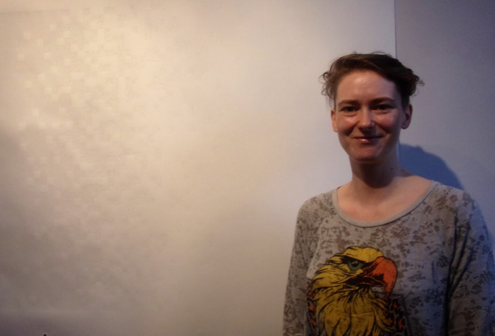 Katherine Murphy in front of thousands of holes, not easily spotted in a photograph