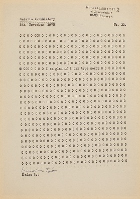 Endre Tót: I am glad if I can type Zer000… 1975 – Typewriting, ink