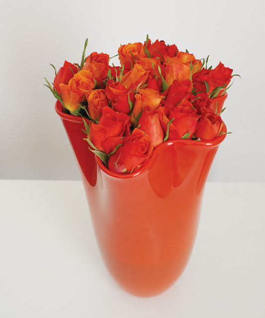 | Michael Petry: Red Roses, 2009 – one of three blown glass and cut flower arrangements in which the rim of the vase is taken from online submission of anus shapes, and each flower choice represents a man’s sexual preferences via the 1970’s gay hanky colour code. |