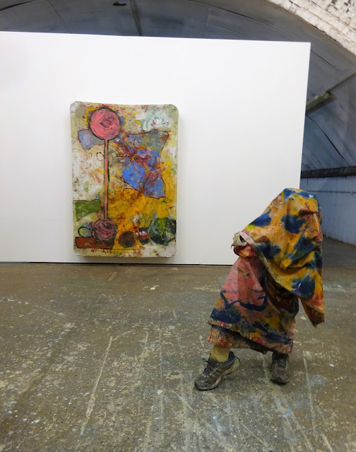 The railway arches near Hackney Central Station look set to act as a useful art resource until more commercial developments take over, and the biennial Sluice fair will use four of them at the end of September. They are already worth visiting for Paul Cole’s literal exposure of his dirty linen: abstract-tending self portraits of sorts utilise his family’s old bedsheets as low value grounds which encourage guilt-free spontaneity and enable paint applied on both sides to contribute to the face shown. Some sheets are wall hung, six others take on a more sculptural presence by being draped over pairs of the artist’s old shoes. Moreover, Amy Green’s subtle graphite drawings are well worth a look in the neighbouring Arch.
