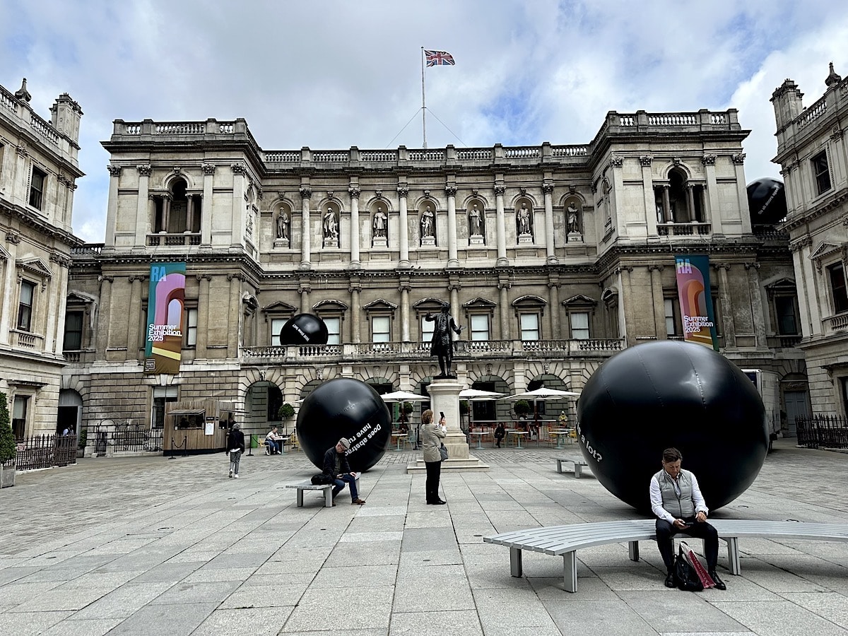 Another Annus Mirabilis, Another RA Summer Exhibition, No 258, which all kicked off in 1769, the year of Napoleon Bonaparte’s birth, so it’s always had big boots to fill. 1769 also saw James Watt’s patent for the Steam engine being granted. This year’s show’s Station Master on the Piccadilly, “Lots of Art in one Place,” Express, features Ryan Gander and his large inflatable balls. Mr Gander’s expansive assets are a much-needed injection of conceptualism into the storied exterior & interior rooms of Burlington House.