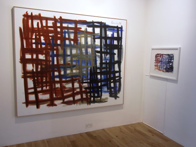 By curious coincidence, given the rarity of his appearances in London, these shows each provide a good introduction to one of the several long-running streams of work produced by the German artist Günther Förg   (1952 -2013). Both contain echoes of the architecture – especially windows – which Förg also photographed. White Cube has acrylic paintings on lead sheets wrapped around wooden panels (Förg’s favoured surface in 1984-92). These attain a severe resonance through the scratches, scrapes, and occlusions of their heavy base both in exposed patches and in how glimpses show through and the grounds mutes the colour of the painted sections. Almine Rech presents freely drawn grids, a series which ran from 1992 onwards. In this set from 20o6, the colours are energised by the luminously white grounds, and Förg made a small pendant watercolour version of each afterwards, as if memorialising – by deliberating on – his instinctual actions.