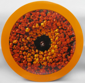 Richard Saltoun, who has just opened his own gallery in Fitzrovia but is collaborating here with Karsten Schubert, is a particularly strong presenter of female artists from previous generations. Helen Chadwick prefigured aspects of the YBA’s approaches before her untimely death in 1996. Her thirteen-strong series of‘Wreaths to Pleasure’ (she called them ‘bad blooms’) have a seductive repulsiveness to their bodily sub-texts. ‘No.1’ clusters tightly-bunched tulips round a single black cherry in a well of oil to generate an image which collapses interior and exterior to appear at once cellular and sexual,