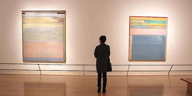 My first exposure to the work of Richard Diebenkorn  came via the limited reproduction of a few works which I encountered as a Student in London during the 1970’s. I was well aware of the reaction against the constraints of Late Modernism which had occurred in New York led by Johns, Rivers, Rauschenberg and others, but I detected something different there. On the mention of his name my Tutors at the Royal College commented ‘Oh him he’s no good he can’t decide if he’s Figurative or Abstract’. The British version of Late Modernism was in full flood and such was the Dogma.