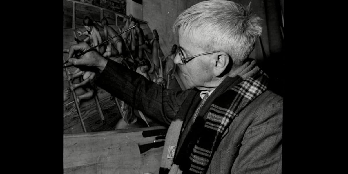 Sir Stanley Spencer CBE RA (30 June 1891 – 14 December 1959) was an English painter. Shortly after leaving the Slade School of Art, Spencer became well known for his paintings depicting Biblical scenes occurring as if in Cookham, the small village beside the River Thames where he was born and spent much of his life. Spencer referred to Cookham as “a village in Heaven”, and in his biblical scenes, fellow-villagers are shown as their Gospel counterparts. Spencer was skilled at organising multi-figure compositions such as in his large paintings for the Sandham Memorial Chapel and the Shipbuilding on the Clyde series, the former being a World War One memorial while the latter was a commission for the War Artists’ Advisory Committee during World War Two. As his career progressed, Spencer often produced landscapes for commercial necessity and the intensity of his early visionary years diminished somewhat while elements of eccentricity came more to the fore. Although his compositions became more claustrophobic and his use of colour less vivid he maintained an attention to detail in his paintings akin to that of the Pre-Raphaelites.