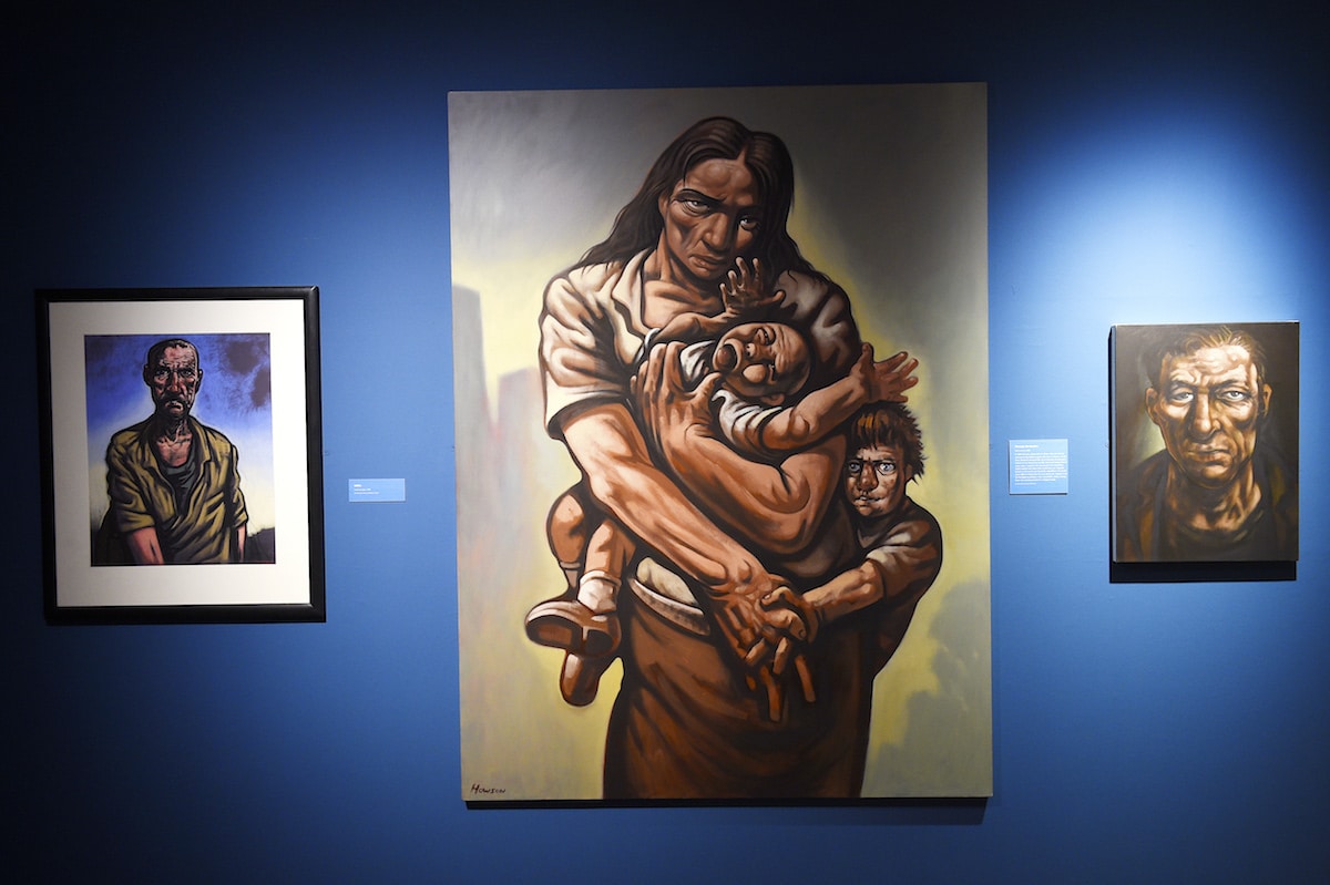 These experiences of trauma led him into the depths of despair, and with his life at a very low ebb, Howson reached out to God, experiencing a life-changing moment. Many of the works exhibited on the second floor of the gallery are inspired by his ongoing faith journey, including his ‘Stations of the Cross’ series. His faith has compelled Howson to continue to respond to contemporary events in his own unique way. The Covid-19 Pandemic and the ongoing war in Ukraine are themes he explores in recent paintings and works on paper. The exhibition’s top floor includes seminal major works from the last decade, such as ‘Prophecy’ and ‘Babylon’, as well as a new series of apocalyptic ink paintings crammed with fearsome beasts and grotesque figures.