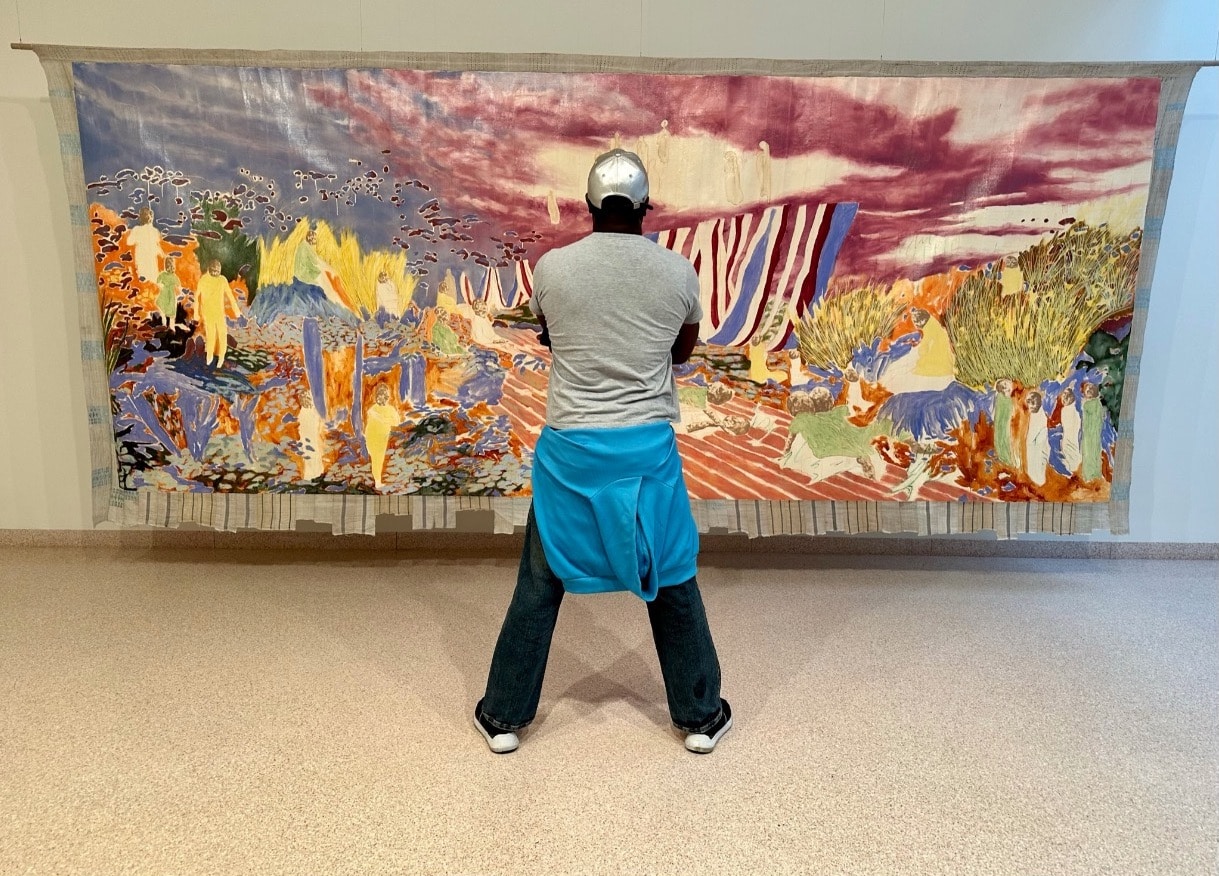 ‘The Dance of People and the Natural World’ at Hastings Contemporary is the first major UK solo exhibition of new and recent works by Lagos-based artist Nengi Omuku and explores her profound relationship with the natural world. The show spans five of Hastings Contemporary’s eight galleries and includes works made between 2021 and 2023.