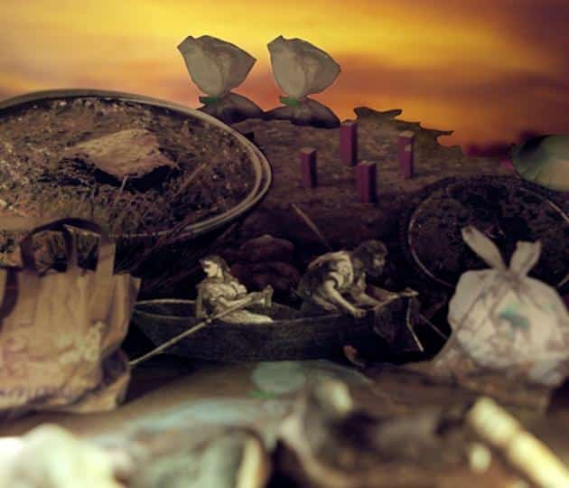 Our Mutual Friends draws on two key themes from Dickens’s tale: the scrapheaps and dustheaps of Victorian London and the superficialities of the salon-society social whirl. It explores how those motifs might resonate today – the dirt and debris of the riverside dustheaps superseded by the virtual/digital junk and clutter we carry around in our heads/Blackberrys/phones, and the social whirl extended and accelerated by Twitter, Facebook, Instagram etc; a never-ending source of that very same disposable but insidiously cluttering material.