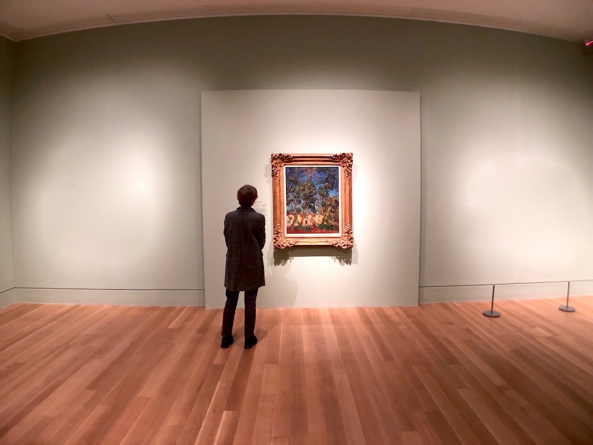 Nonetheless we are now facing numerous canvases in an identical format but with very different subjects, and we can only look back and forth along this long wall showing the visions of a genius. So we see again Wheatfield with Crows (which popular myth insists on linking to the day of his suicide), presented in between Fields near Auvers and Wheatfield under Thunderclouds (illustrated above). The effect this has merits pause for reflection – they do indeed go well together.