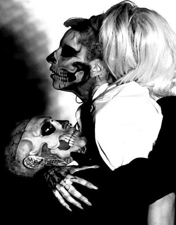Zombie Boy clarified that he preferred the moniker “Zombie” to “Skullboy”. He had been referred to in the past as Skull Boy or Skeleton Boy… His exposure led to increasingly mainstream media coverage. He worked with Lady Gaga and was discovered by YBA artist Marc Quinn, in Bromont, Quebec, where he was working with the sideshow, Alive on the Inside, at Carnivàle Lune Bleue during the Summer of 2010. On March 5, 2010, a Facebook fan page was created about Zombie Boy’s unusual choice of tattoos. This page reached 1,526,292 members (as of November 19, 2011) and ultimately led to his “discovery” by Lady Gaga’s fashion director Nicola Formichetti.